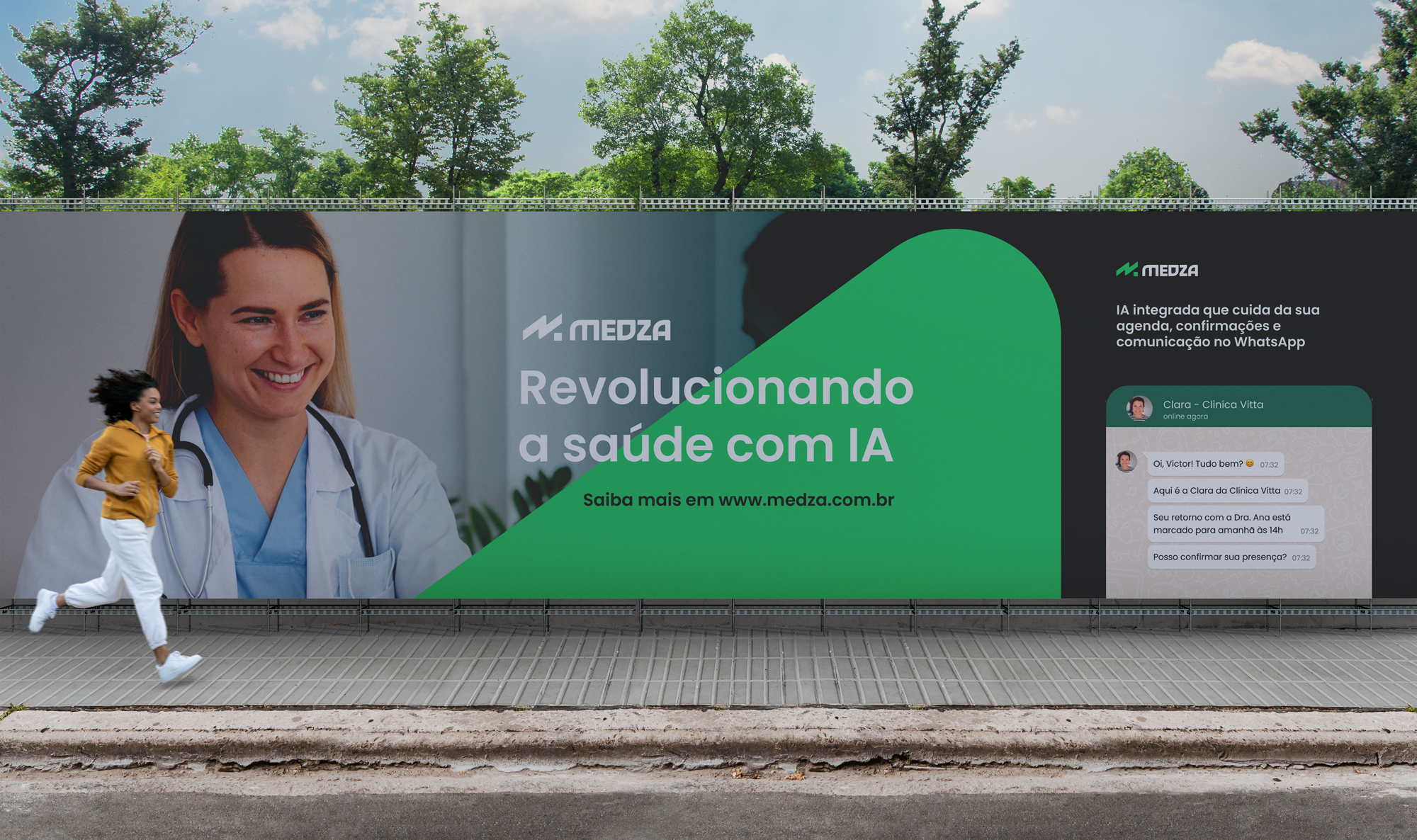 A direção de arte da Medza é pensada para transmitir confiança, acolhimento e inovação, refletindo nossa missão de simplificar operações e transformar a experiência em saúde com tecnologia.